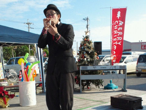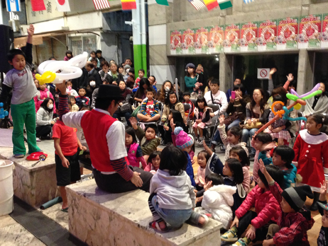県内外のイベント会場、ホテル、デパート、商店街、公園、サークル、忘新年会、公園、小さな演出から